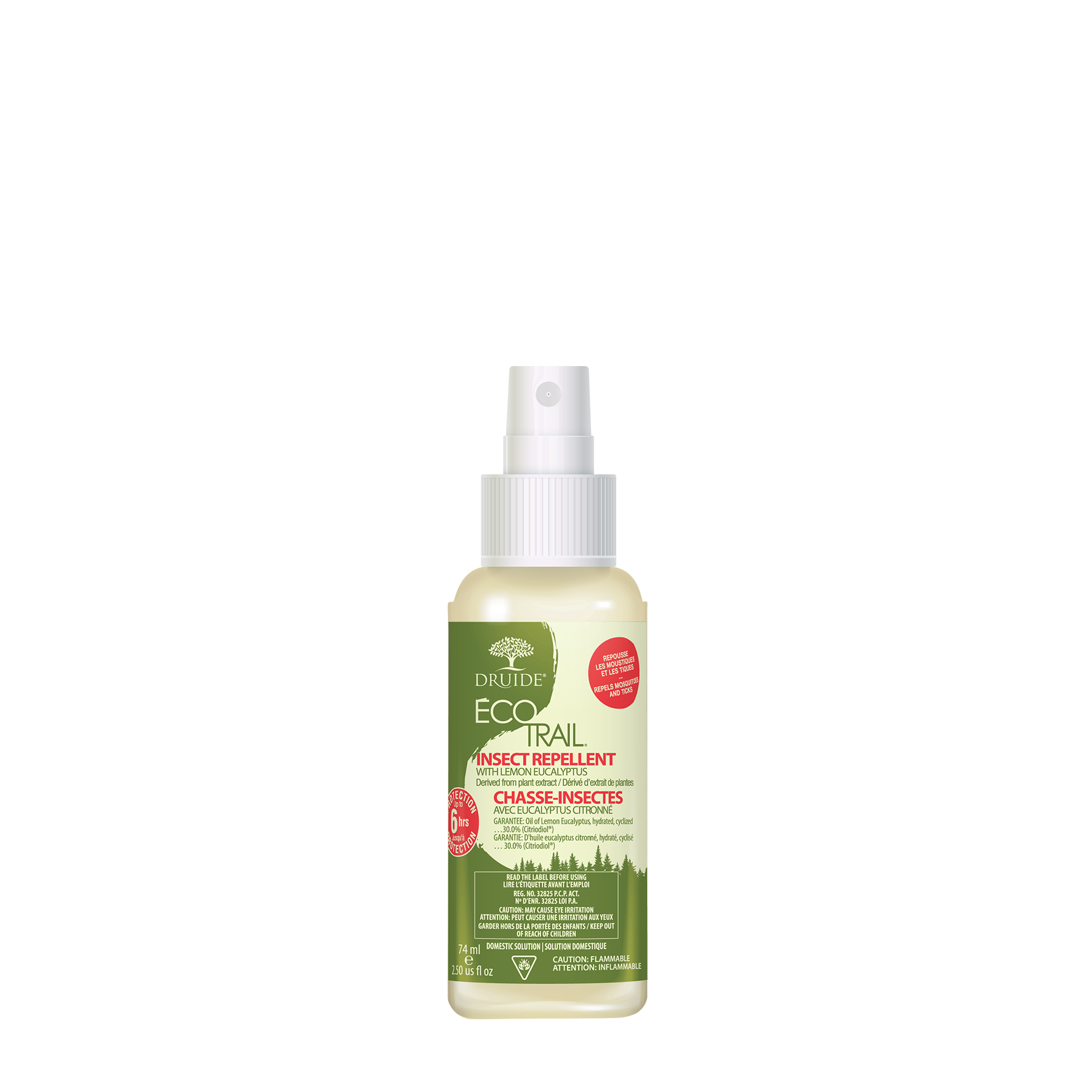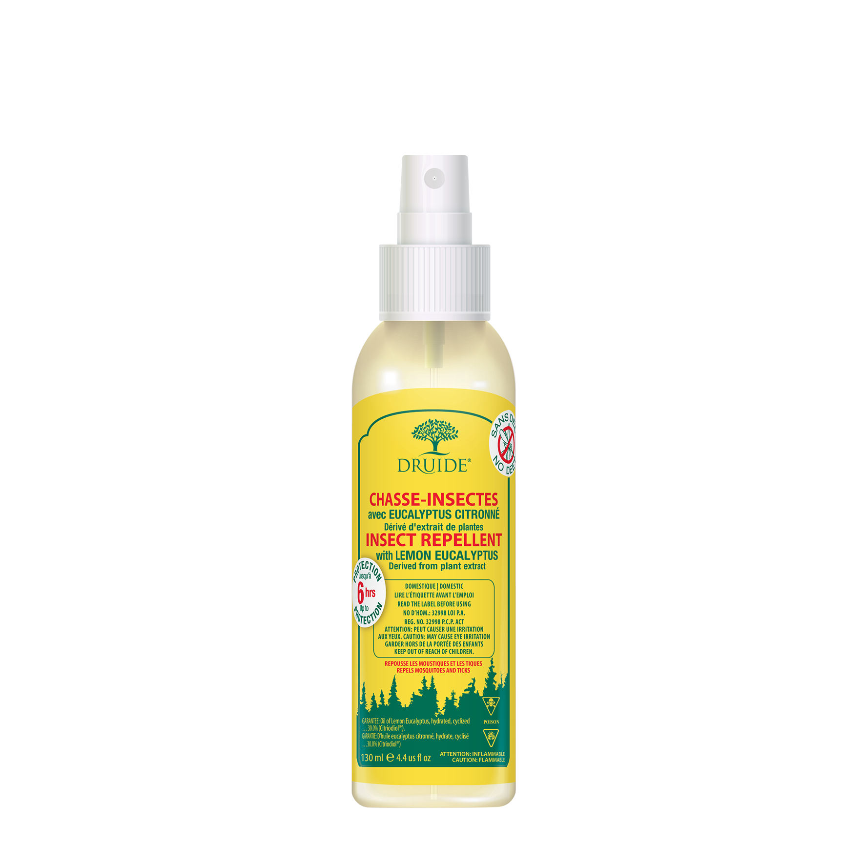 Le chasse-insectes de Druide éloignera les moustiques, les mouches piqueuses et les tiques jusqu'à 6 heures. L'eucalyptus citronné est le répulsif végétal le plus efficace du marché.